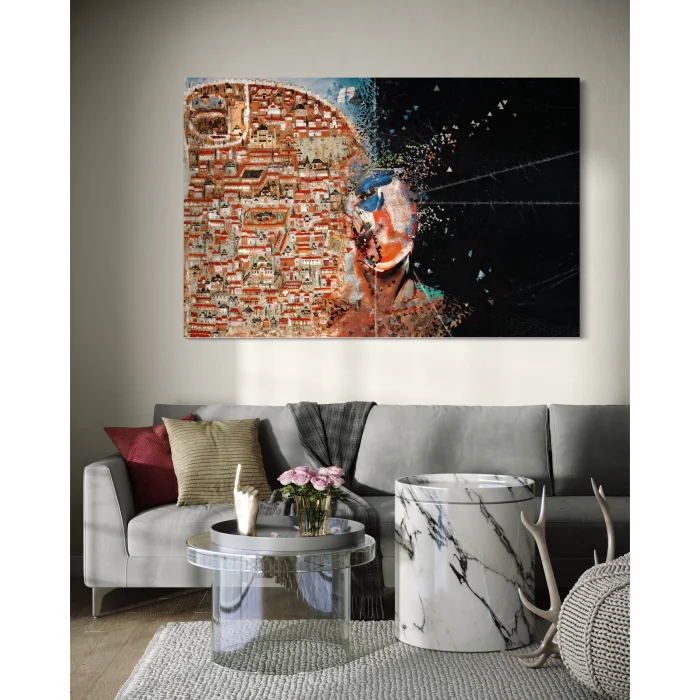 Tasarımcımız, eserlerin konumlanacağı mekâna ve yayacağı enerjiye duyduğu güvenle, EUDOIMONIART özel ürünlerini kişiselleştirilmiş bir yüzey tasarımı anlayışıyla ele alır. Ebat ne olursa olsun, her eser bulunduğu alanla uyumlanacak şekilde; modern, duyusal ve sembolik katmanları özenle çalışılmış bir kompozisyon olarak tasarlanır. Ürünlerimiz, yüksek kaliteli, mat ve özel dokulu CANVAS kumaş üzerine, ileri teknoloji baskı makineleriyle üretilir; bu sayede renkler parlak, yüzeyler sofistike bir derinlik taşır.