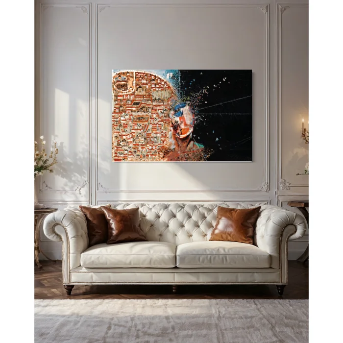 Eserlerin üretiminde kullanılan UV baskı teknolojisi, modern sanatın merkezinde yer alır. Baskı sırasında mürekkebin UV ışığıyla anında sabitlenmesi, tuval üzerinde parlak, uzun ömürlü ve yüksek detaylı bir yüzey oluşturur. UV ile kürlenen mürekkepler solmaya, çizilmeye ve çevresel etkilere karşı dayanıklıdır; bu sayede eserler, mekânınızda yıllar boyunca ilk günkü etkisini korur. Katmanlar hâlinde uygulanan bu teknik, geleneksel yağlı boya tabloların renk doygunluğunu ve çizgisel karmaşıklığını dijital düzlemde ustalıkla yeniden üretir.