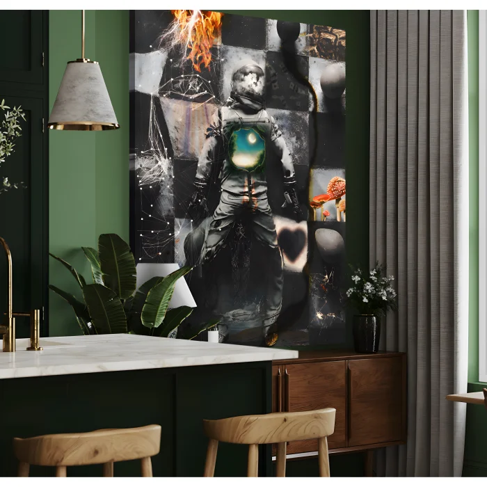 Tasarımcımız, olduğu bölgeye hangi ebat olursa olsun yayacağı enerjisinden emin olduğumuz kişiselleştirilmiş EUDOIMONIART özel ürünlerini, modern ve duyusal eserlerin yüzey tasarımları özel olarak çalışılmaktadır. Ürünlerimiz; yüksek kalite, mat özel dokulu CANVAS kumaşımıza basılmıştır. Yüksek teknoloji baskı makineleriyle basılan ürünlerimiz de renkler oldukça parlak görünür. Esas amaçlarımızdan bir diğeri eserlerin digital olarak sergilenmesini bir bizim açımızdan zaman yönetimi sahibi olacak kişi için ise, sürdürülebilirlik olarak ürünün konum alacağı yer ile uyumlanması ve kişiye özel detaylar ve sembollerin daha belirgin olarak ortaya çıkması faktörüdür. Modern ve minimalist tasarımlı EUDOIMONIART özel ürünlerini, kendi içinde bir kompozisyon içinde tasarlanmış, bir bütün oluşturur, diğer parçalarla dilediğiniz gibi, duvarınızda tek olarak kullanabileceğiniz gibi benzer veya kontrast renklerdeki başka obje ve ürünler ile bir araya getirip kolaylıkla set ve kombin oluşturabilir. Duvarınızı adeta bir sanat galerisine çevirip mekanınızda eşsiz bir dekor yaratabilirsiniz. Sonsuz bir derya olan algı ve düşünceler sizde ve etrafınızda neler uyandıracak. Merak ve teşviği ile hareket alan EUDOIMONIART şimdi sizlerin gözlerinin içine bakıyor.