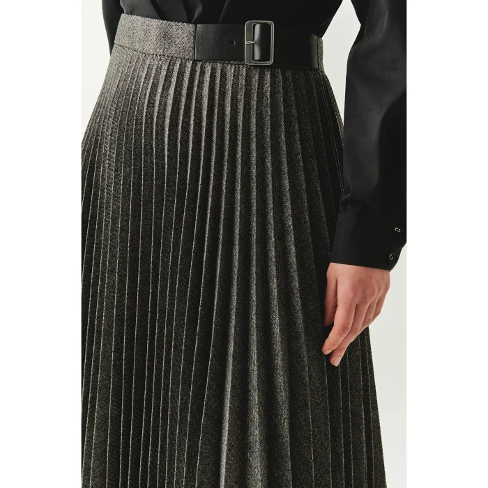 Ürün: Balık Sırtı Desenli Pilisoley Yüksek Bel Tokalı Regular Midi Etek