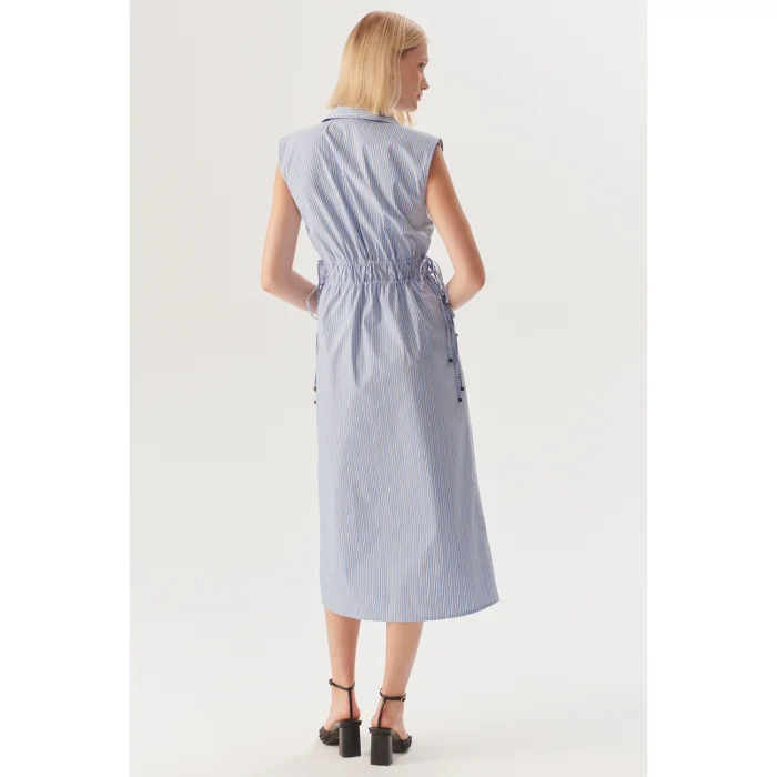 Ürün: Beli Lastikli Bağcık Detaylı Çizgili Pamuklu Midi Gömlek Elbise