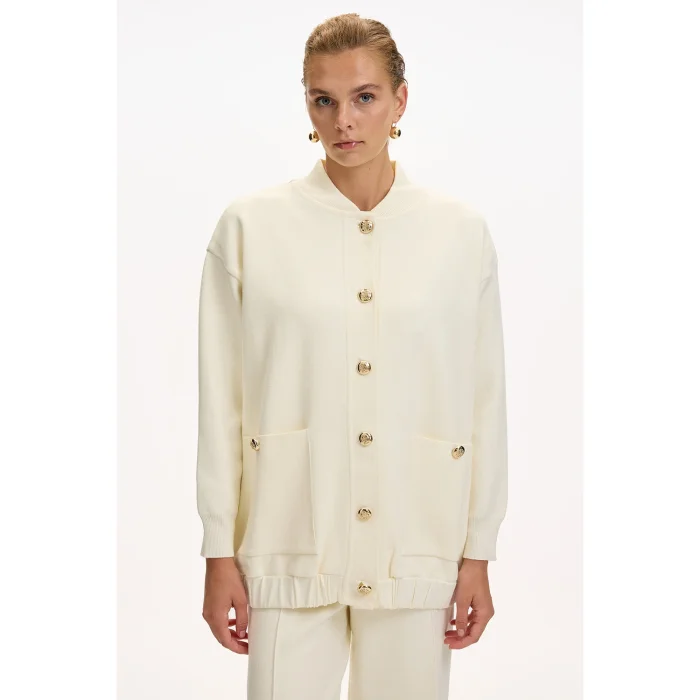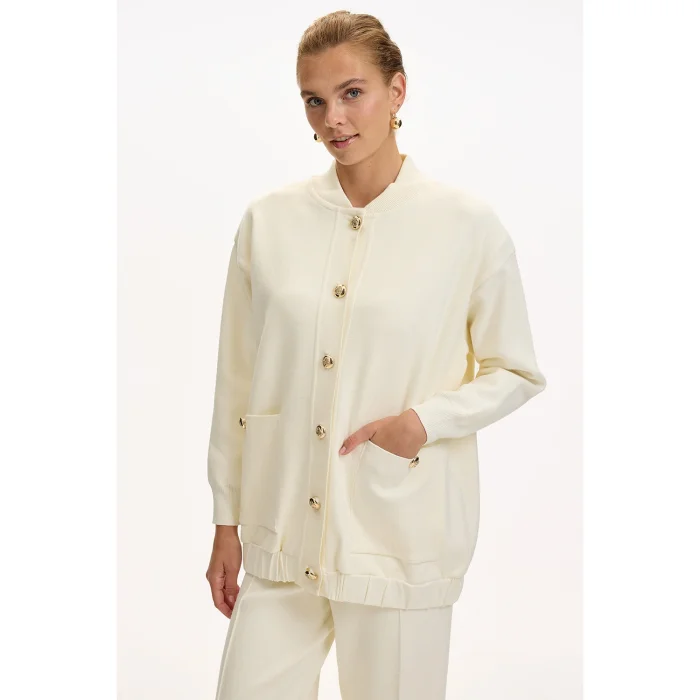 Ürün: Bisiket Yaka Cepli Düğmeli Oversize Tirko Hırka