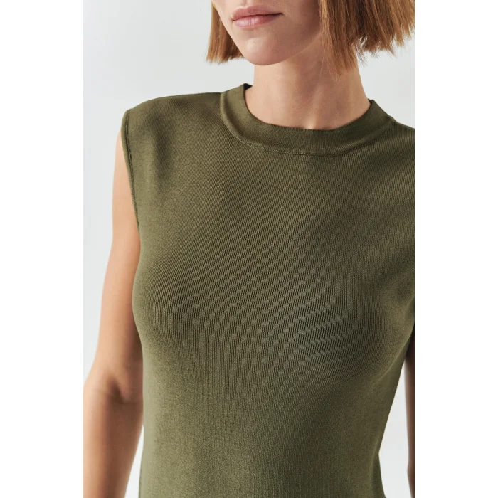 Ürün: Bisiklet Yaka Triko Garnili Asimetrik Kesim Slim Fit Midi Elbise