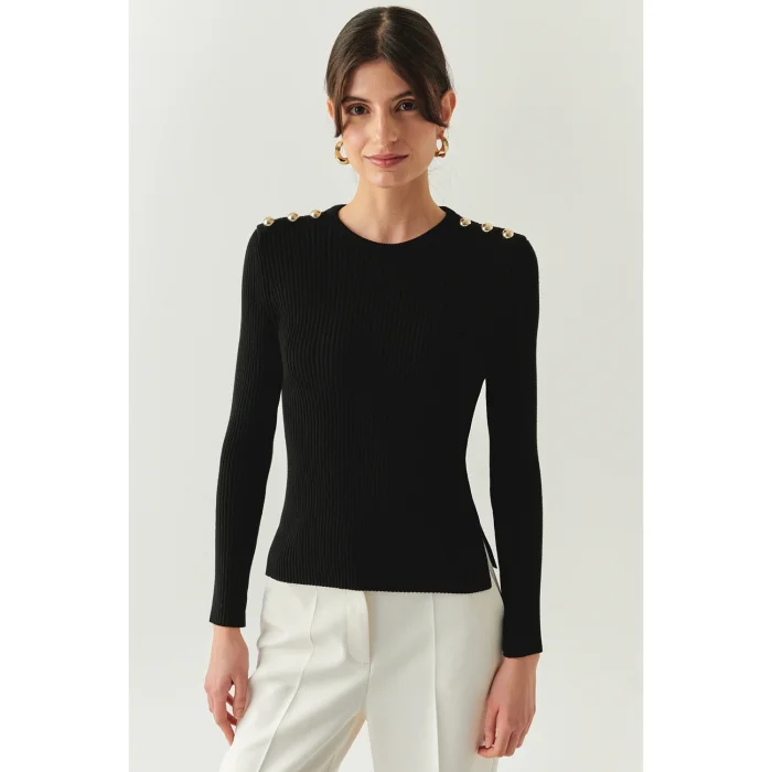 Ürün: Bisiklet Yaka Uzun Kollu Düğme Detaylı Slim Fit Triko Bluz