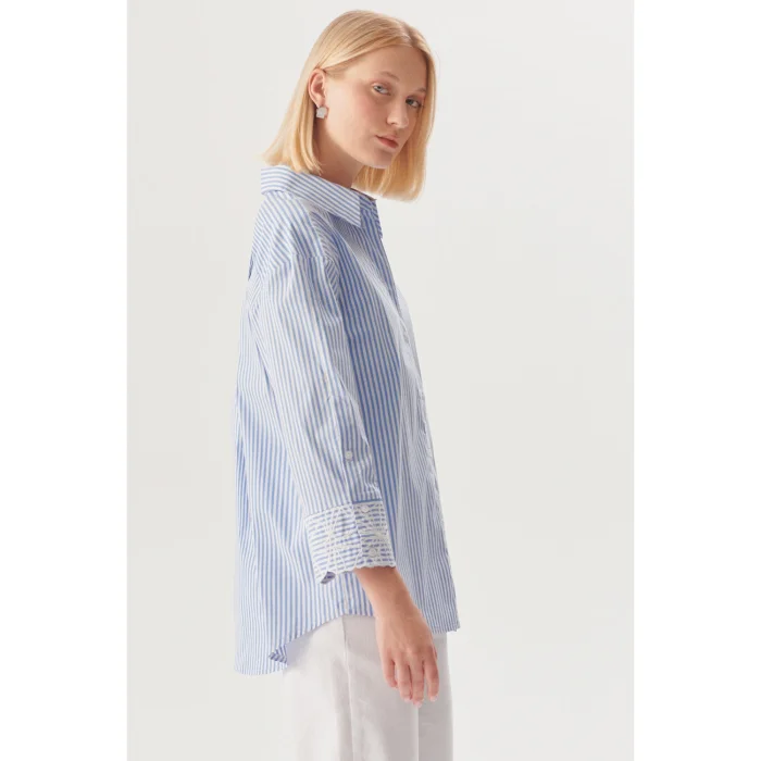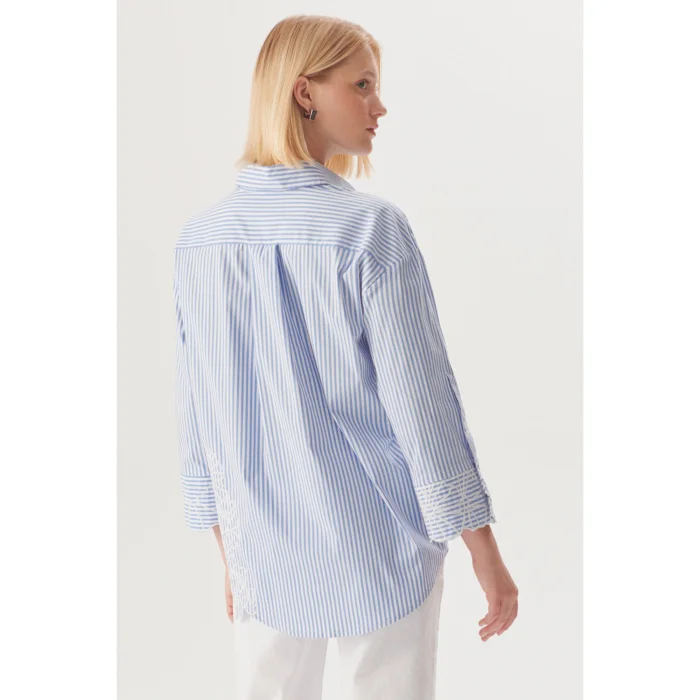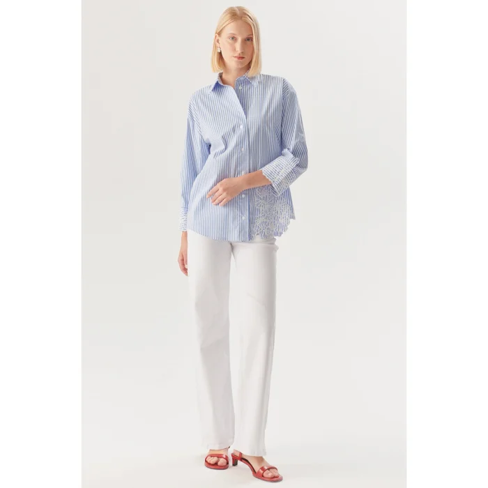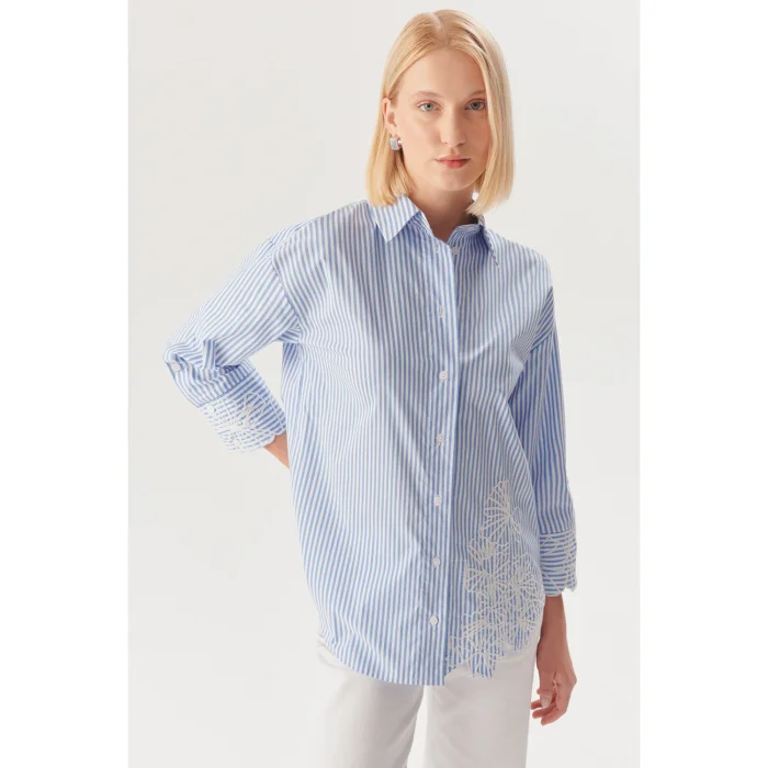 Ürün: Çiçek İşlemeli Çizgili Regular Gömlek