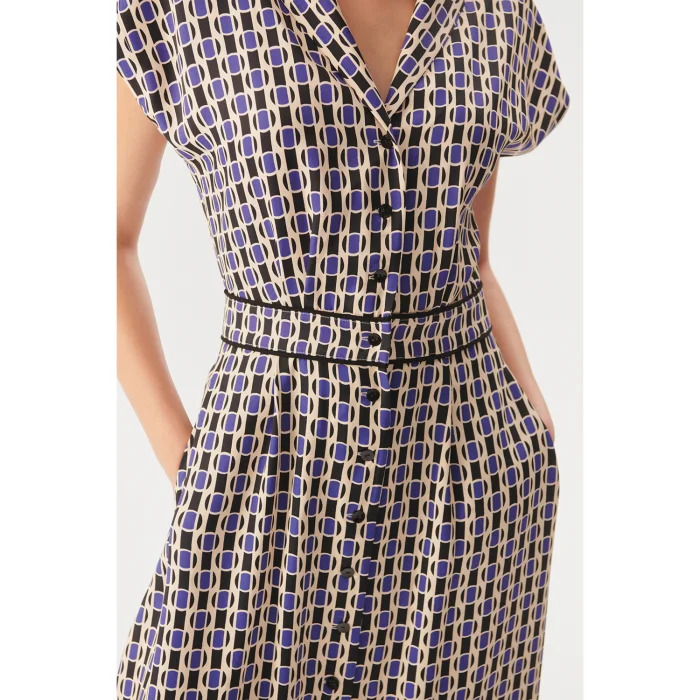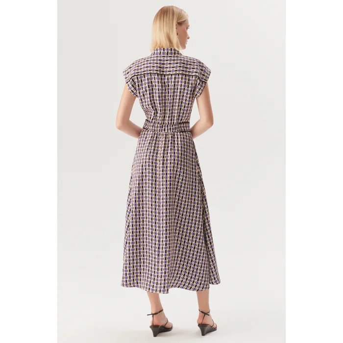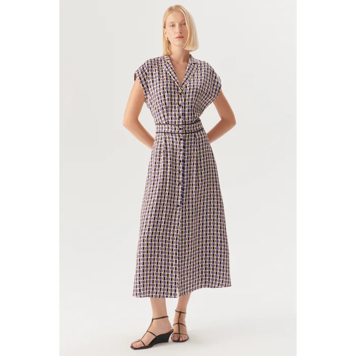 Ürün: Geometrik Desenli Bel Detaylı Midi Gömlek Elbise