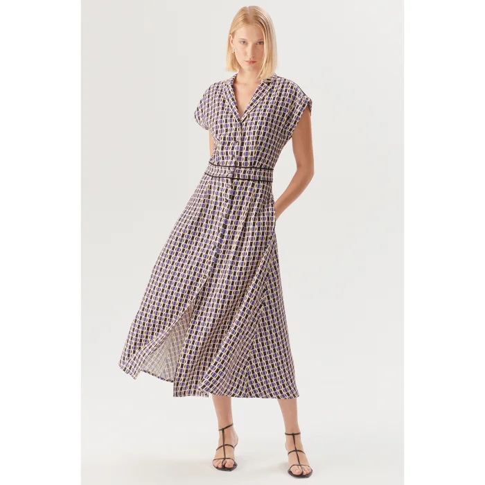 Ürün: Geometrik Desenli Bel Detaylı Midi Gömlek Elbise