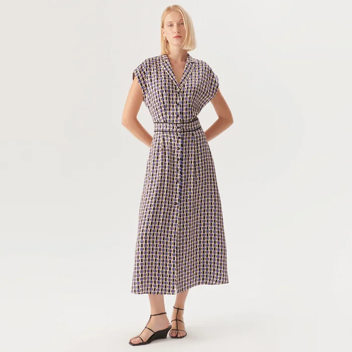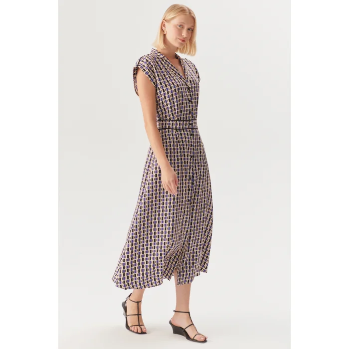Ürün: Geometrik Desenli Bel Detaylı Midi Gömlek Elbise