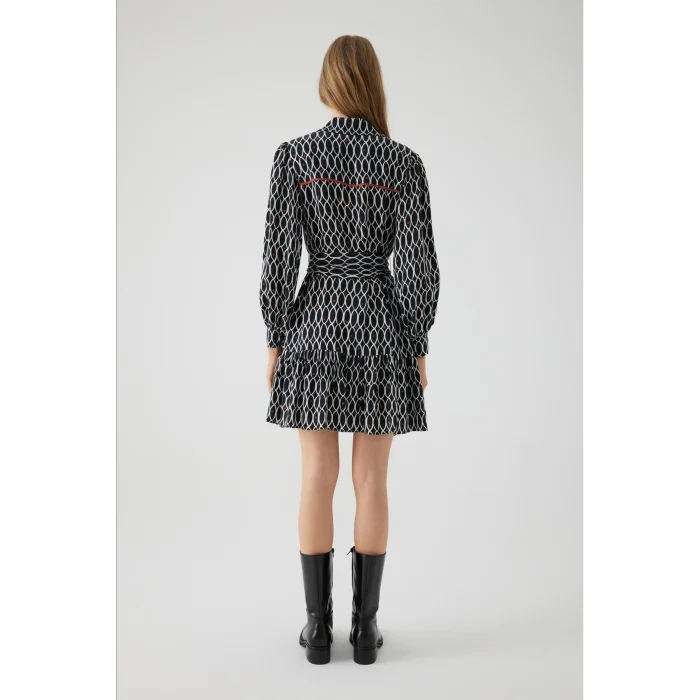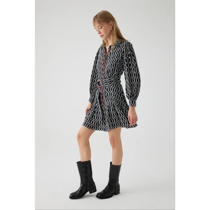 Ürün: Geometrik Desenli Saten Regular Mini Elbise