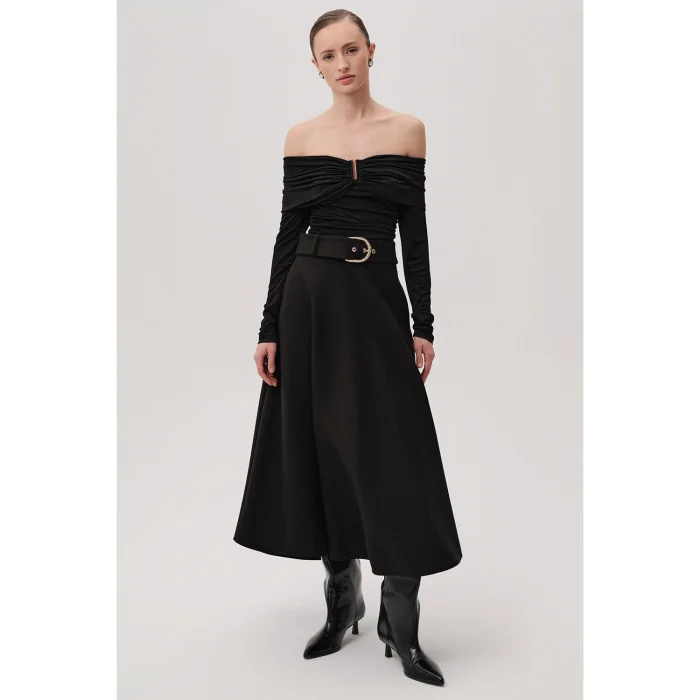 Ürün: Kemer Detaylı Cepli Regular Kalıp Midi Etek