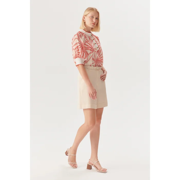 Kemer detayı ve duble paça bölümüyle öne çıkan bu bej şort, yaz gardırobunun en gözde parçalarından biri olmaya aday. Zarif kemeri ile modern bir siluet yaratırken, hafif kumaşı sayesinde sıcak havalarda konfor sunuyor.