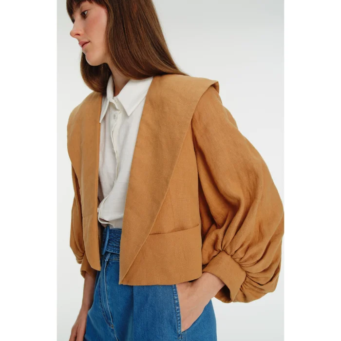 Şal yakasıyla farklı bir stil yaratmanızı sağlayacak olan bu ceket, keten kumaşıyla da sezona ayak uydurmayı başarıyor.