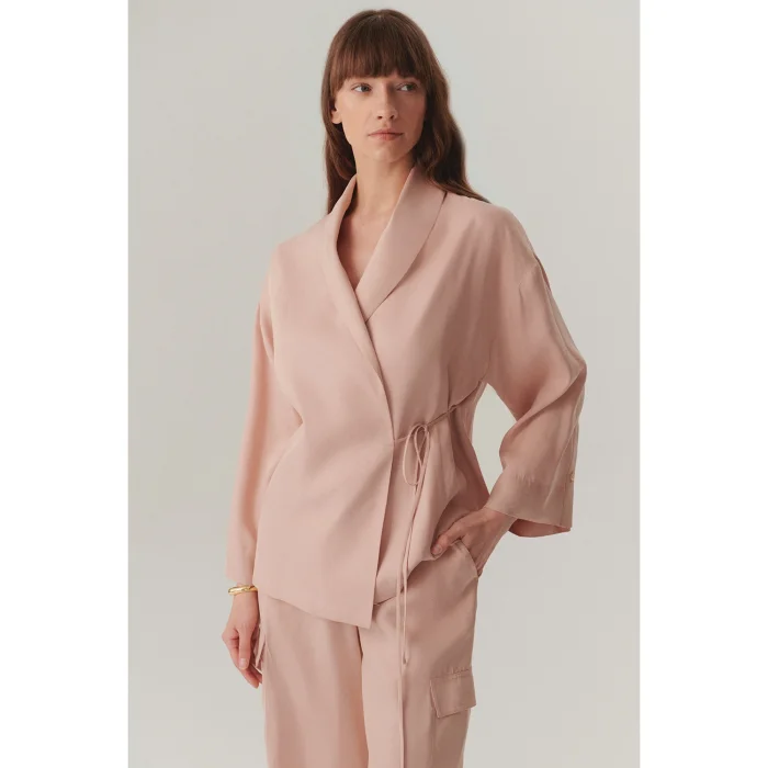 Ürün: Kruvaze Bağlama Kapamalı Rahat Kalıp Modal Kumaş Pudra Ceket