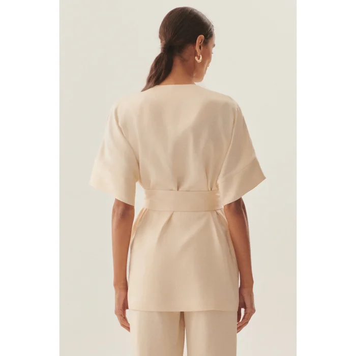 Zarif kruvaze yaka tasarımı ve modern yarasa kollarıyla göz alıcı bir silüet yaratan bu ceket, konforlu kalıbıyla her tarza uyum sağlıyor.