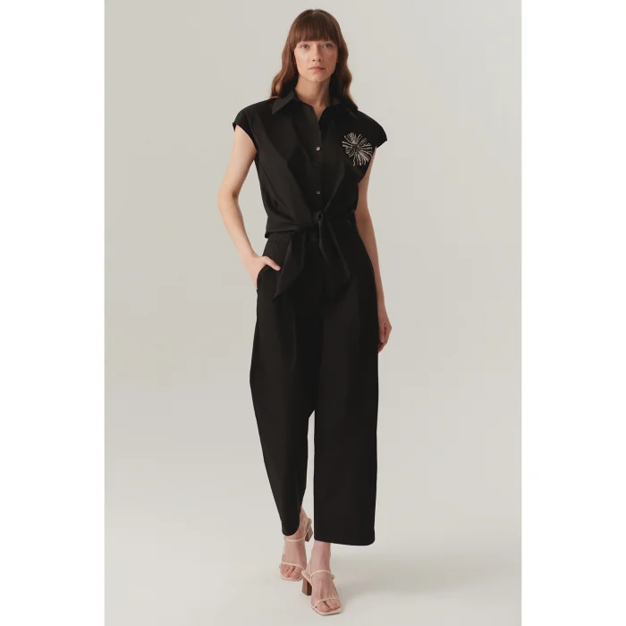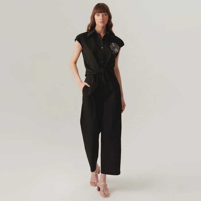 Rahat kesimi ve zamansız tasarımıyla dikkat çeken Orta Bel Saf Pamuk Kumaş Bol Kesim Kısa Paça Siyah Pantolon, hem günlük hem de şık kombinler için mükemmel bir seçenek. %100 saf pamuk kumaşıyla hafif ve nefes alabilen yapıya sahip olan bu pantolon, gün boyu konfor sunar.Orta bel tasarımı doğal bir uyum sağlarken, bol kesimi ve kısa paçaları modern ve özgün bir siluet oluşturur.