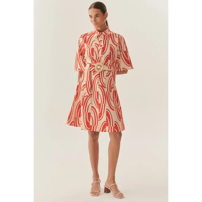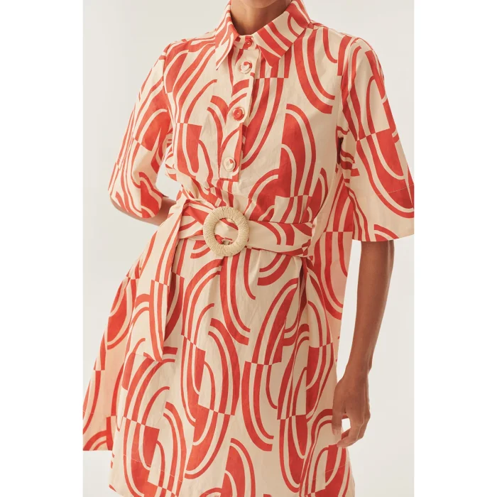 Ürün: Soyut Desenli Tokalı Kemer Detaylı Pamuklu Gömlek Yaka Regular Elbise