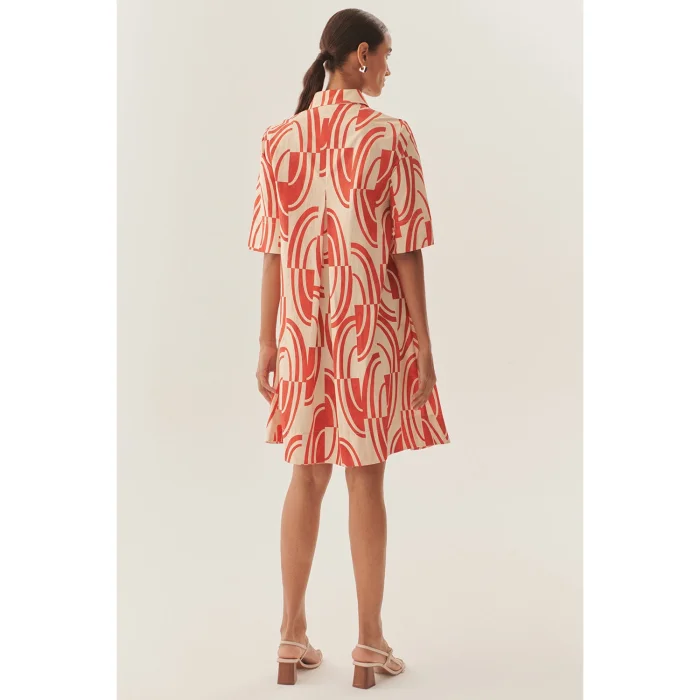 Ürün: Soyut Desenli Tokalı Kemer Detaylı Pamuklu Gömlek Yaka Regular Elbise