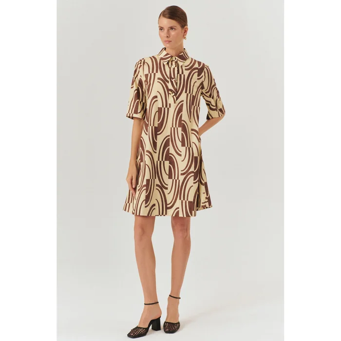 Ürün: Soyut Desenli Tokalı Kemer Detaylı Pamuklu Gömlek Yaka Regular Elbise