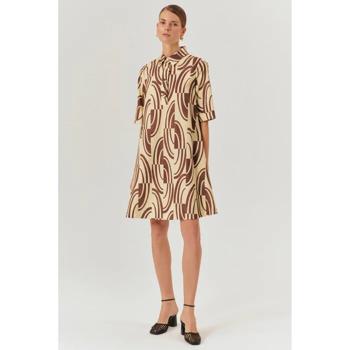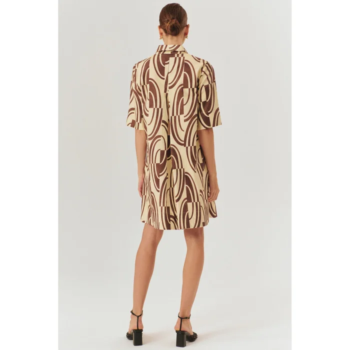 Ürün: Soyut Desenli Tokalı Kemer Detaylı Pamuklu Gömlek Yaka Regular Elbise