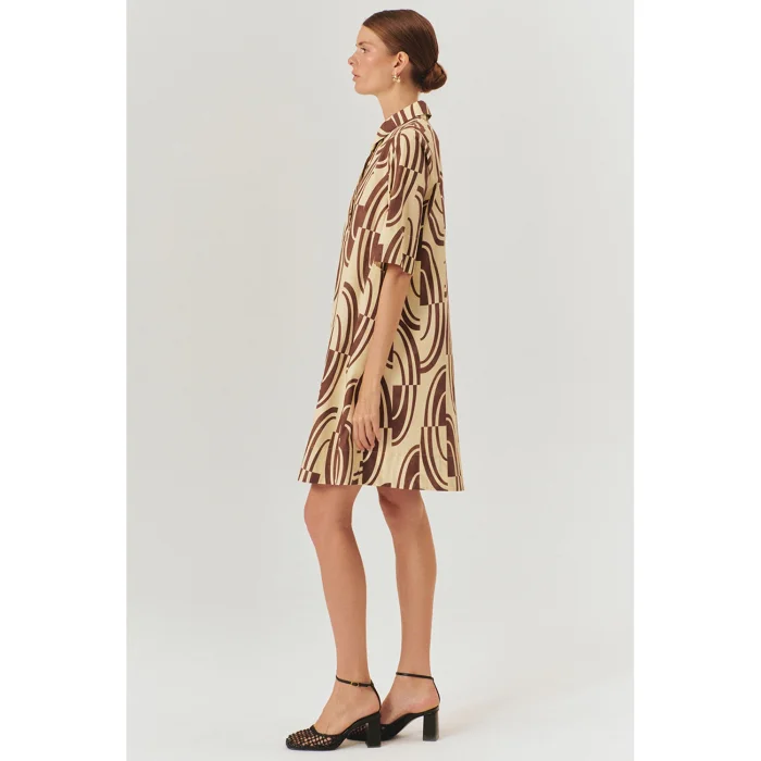 Ürün: Soyut Desenli Tokalı Kemer Detaylı Pamuklu Gömlek Yaka Regular Elbise