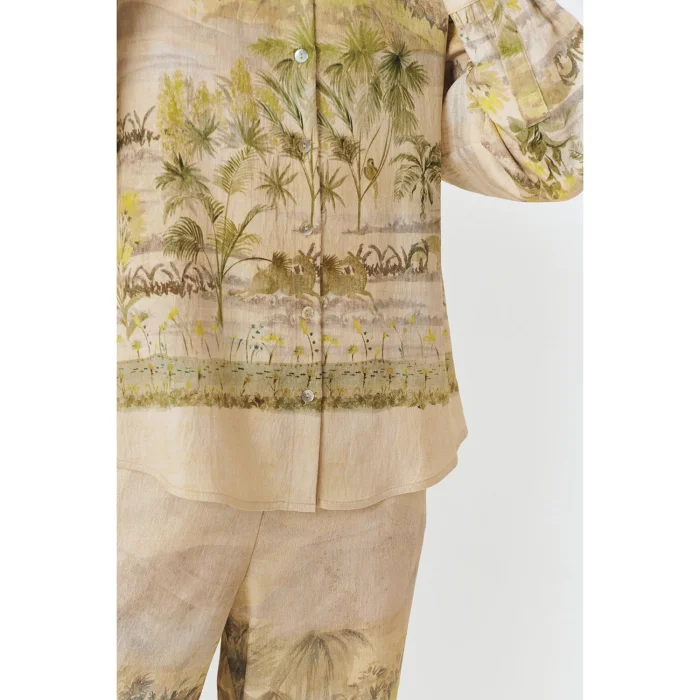 Ürün: Uzun Kollu Gömlek Yaka Rahat Kalıp Tropikal Desenli Gömlek
