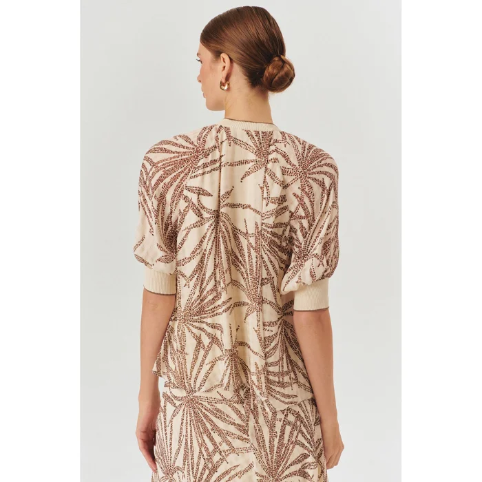 Ürün: Yaprak Desenli Düğme Detaylı Rahat Kesim Rayon Şifon Bluz