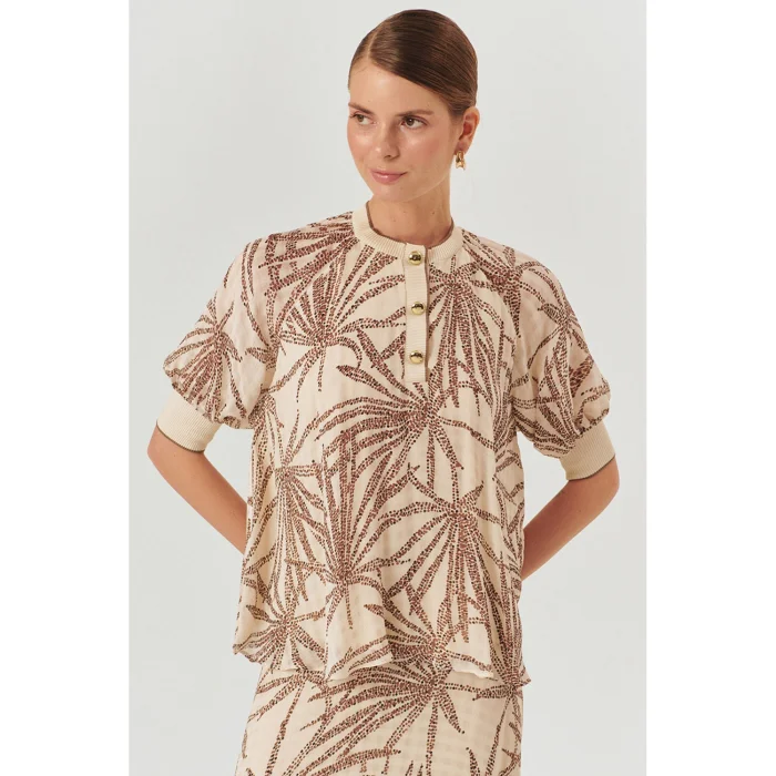 Ürün: Yaprak Desenli Düğme Detaylı Rahat Kesim Rayon Şifon Bluz