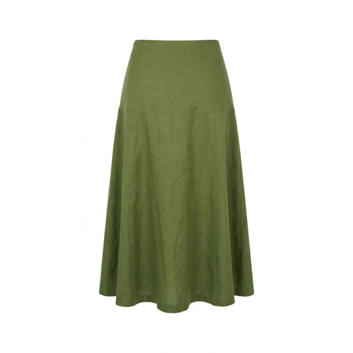 Ürün: Yırtmaçlı Tokalı Fermuarlı Regular Midi Keten Etek