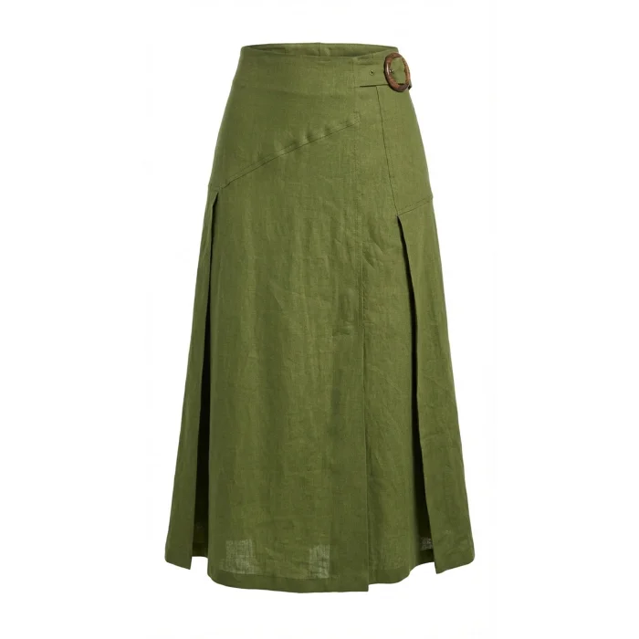 Ürün: Yırtmaçlı Tokalı Fermuarlı Regular Midi Keten Etek