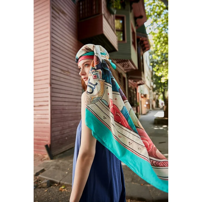 Celestal Pamuk Vual Fular, özenle seçilmiş pamuk ve çevreci zararlı olmayan Oeka-Tex sertifikalı boyalar kullanılarak, CERES Organik kumaş standartlarına uygun olarak sanatsal bir hassasiyetle ve en ince detaylara kadar titizlikle dikkat edilerek sınırlı sayıda dijital olarak basılarak üretilmiştir. Pamuğun nefes alabilen doğal dokusu, tarih boyunca tercih edilmiş bir kumaş olması tasarıma ayrı bir dokunma hissi ve sıcaklık katmaktadır. Şalın kenarları emekçi kadınların maharetli ellerinde özenle kıvrılmıştır. Tasarımımız gardırobunuzda gerek Şal ve Fular gerekse çantanızda heran kullanıma hazır özgün bir bandana olarak özel bir yere sahip olacaktır.
