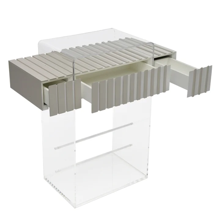 Kemerlerin açılıp kapanmasından ve gerektiğinde sıkılmasından yola çıkılarak tasarlanan BELT dresuar, şeffaf ayakları ile kemeri, zeminden kopararak olması gereken noktaya kaldırıyor.