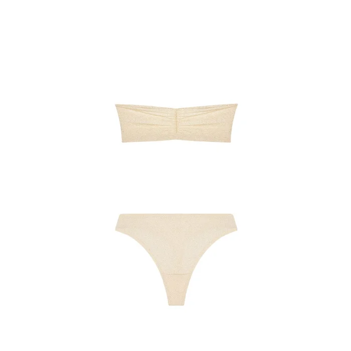 Parlak Kumaş Aksesuar detaylı Straplez İç Çamaşırı Seti