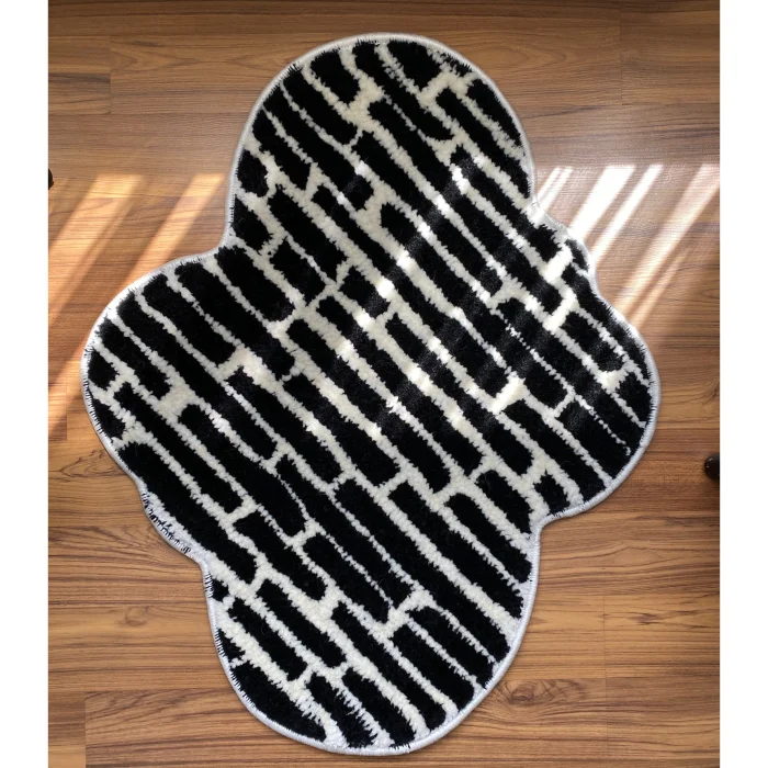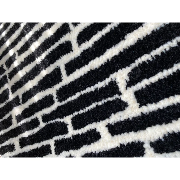 Akrilik ve pamuk iplikten üretilen tasarımımız tufting tekniği ile dokunarak üretilmiştir.