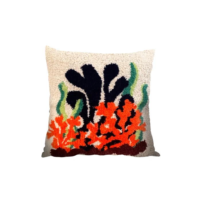 Yosun kırlent tufting tekniği ile dokunarak üretilmiştir. Ölçüler:40x40