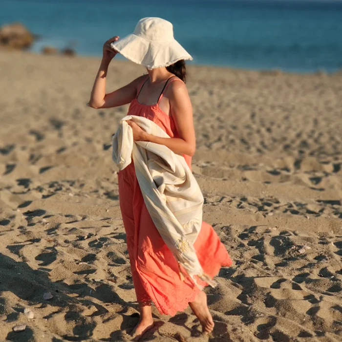 Renk: Kırık beyaz, sarı ve gri çizgiler