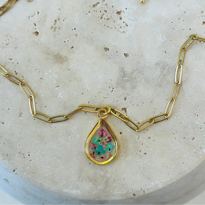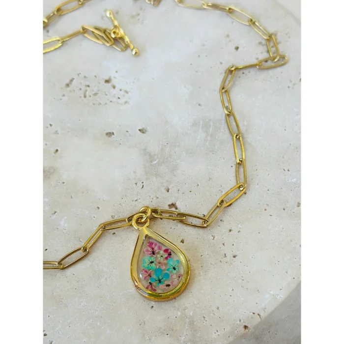 Ürün: Gerçek Çiçekli Bold Chain Damla Kalın Zincir Kolye