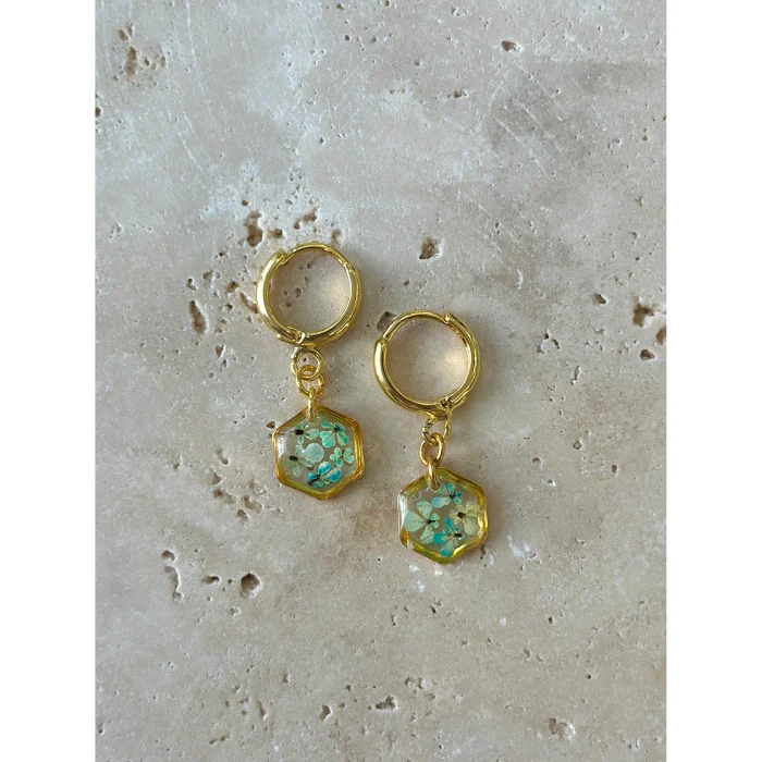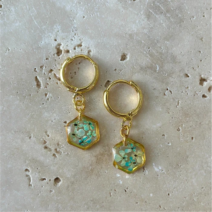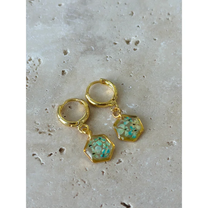 Ürün: Gerçek Çiçekli Teeny Weeny Drop Altıgen Sallantılı Küpe
