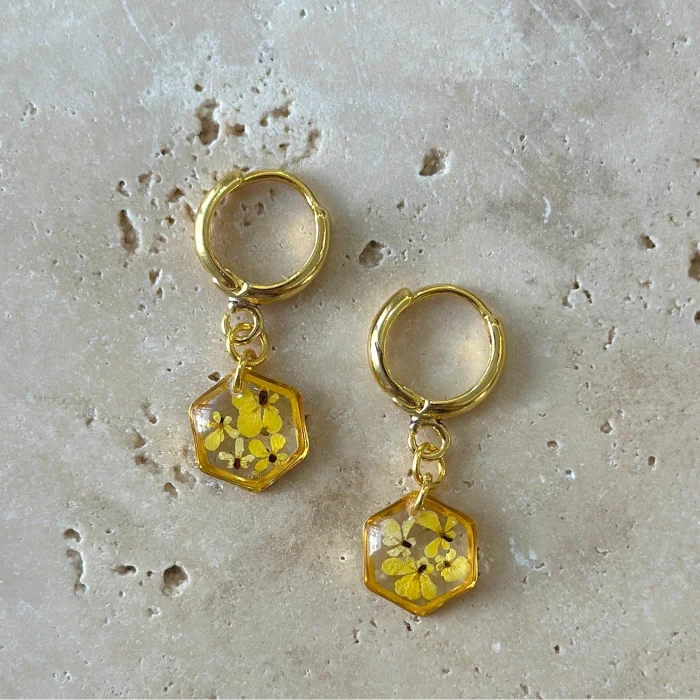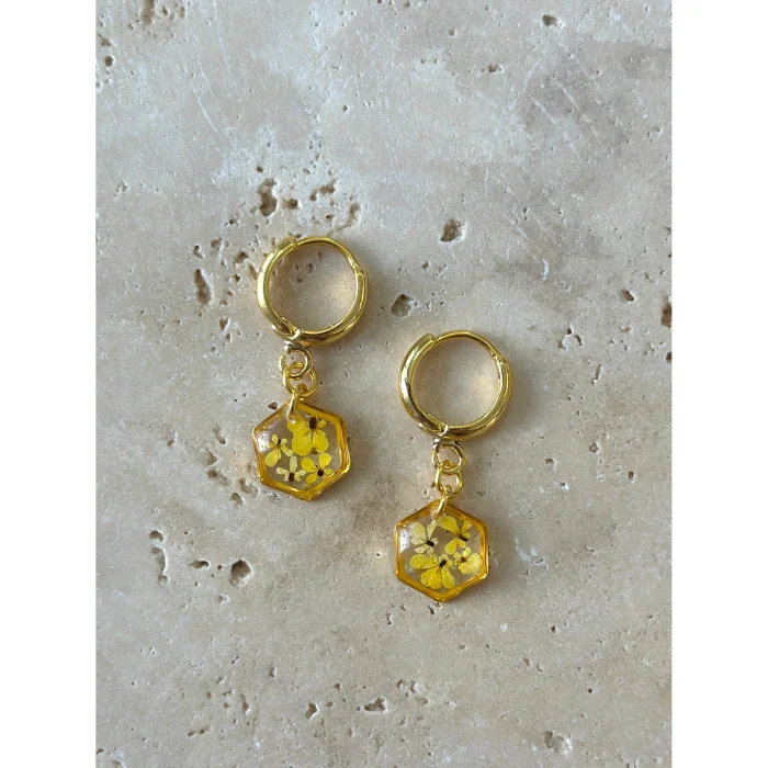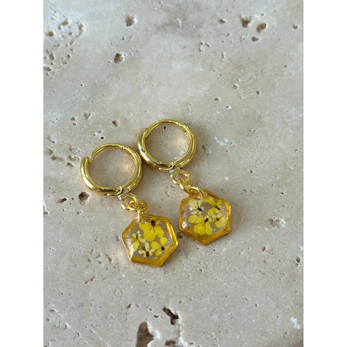 Ürün: Gerçek Çiçekli Teeny Weeny Drop Altıgen Sallantılı Küpe