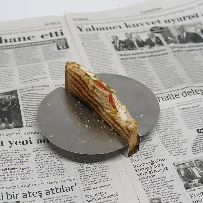 Paslanmaz çelikten üretilen bu ekmek tutucu, işlevselliği formla birleştiriyor. Dairesel şekli, merkezden geçen şık bir şeride sahiptir ve ekmek dilimleri için bir alan yaratırken, yüzeyin geri kalanını pürüzsüz ve sosları veya sosları yaymak için mükemmel bırakır. Estetik odaklı ortamlarda ekmek dilimlerinin sunumunu geliştirmek için idealdir.