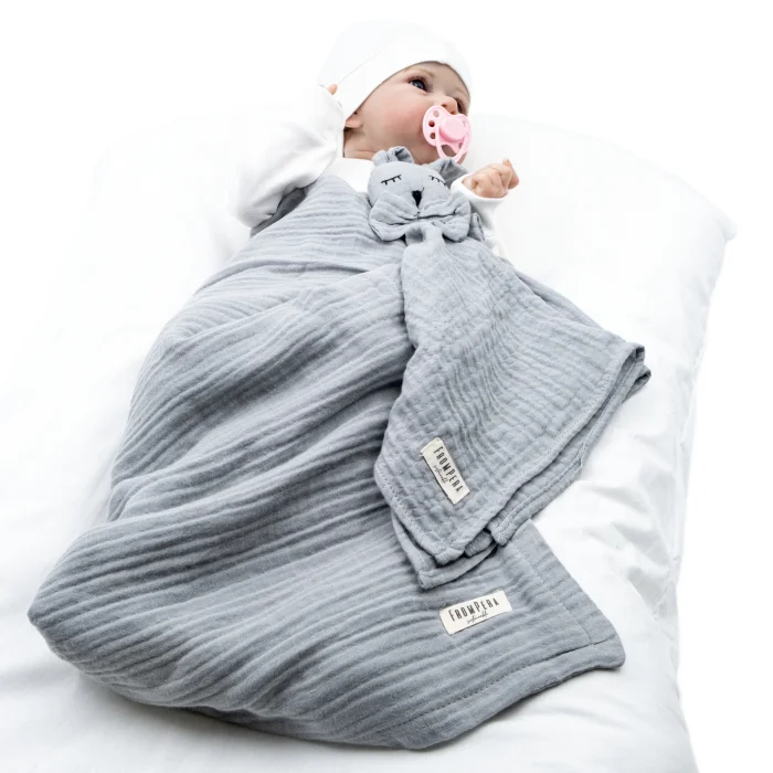 FromPera Bebek Müslin Set toplam 5 parçadan oluşmaktadır: FromPera Müslin Battaniye / Müslin Örtü: 100x100cm gibi geniş ölçülerle ve 4 katlı müslin yapısıyla olmazsa olmaz, battaniye/ kundak / puset örtüsü / banyo sonrası kurulanma / oyun matı olarak kullanılabilmektedir. FromPera Müslin Ağız Bezi: 25x25 cm ölçülerinde kare şekilde tasarladığımız Müslin Bez; ağız bezi / omuz bezi / ter bezi / mendil olarak kullanılabilir. FromPera Müslin Uyku Arkadaşı - Müslin Güvenlik Arkadaşı : 40x40cm 2 adet olarak set içerisinde yer alan FromPera Müslin Uyku Arkadaşları sevimli tavşan ve sevimli kedi şeklinde tasarlanmıştır. Bebekler ebeveynleri yanlarında olmadığında tedirgin olabilirler bu nedenle benimsedikleri nesnelerle bağ kurarak kendilerini güvende hissederler. Hem uyumak hem de oynamak için birbirinden sevimli FromPera Müslin oyuncaklar bebeklerin en yakın arkadaşı, ebeveynlerin de işlerini kolaylaştırarak vazgeçilmezleri olacaktır. FromPera Müslin Büzgülü Mini Çanta - Müslin Kese : 24x16 cm ölçülerinde Bebek Müslin Set içerisinde yer alan hafif ve yerden tasarruf sağlayan pamuklu müslin çanta yıkanabilir pek çok farklı şekilde kullanılabilir. Dilerseniz müslin uyku arkadaşlarını oyun sonrasında ya da müslin battaniyeyi dışarı çıkarken bu keseye koyabilirsiniz ya da yine bebeğiniz için gerekli olan şeyleri ( emzik, biberon, diş kaşıyıcı, bebek bezi vb.) yerleştirebilir, dışarıda kolaylıkla erişebilirsiniz. Belirttiğimiz gibi FromPera Bebek Müslin Set tamamen bebek ve ebeveynin ihtiyaçları düşünülerek minimal şekilde 4 farklı renkte tasarlanmıştır.