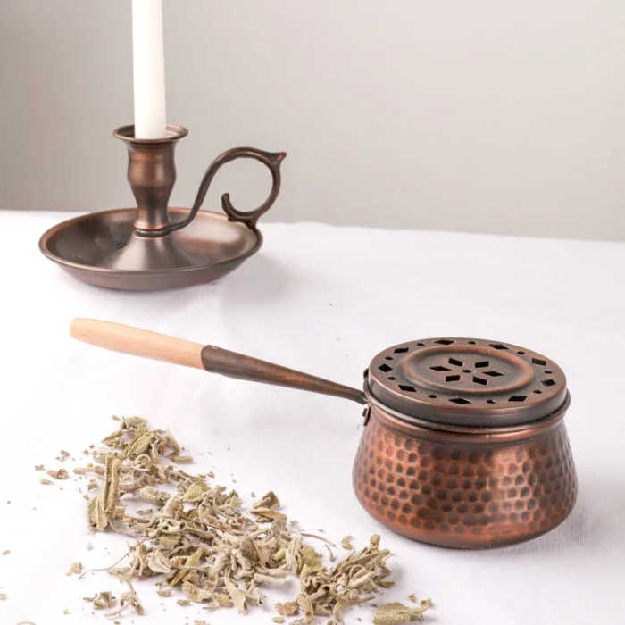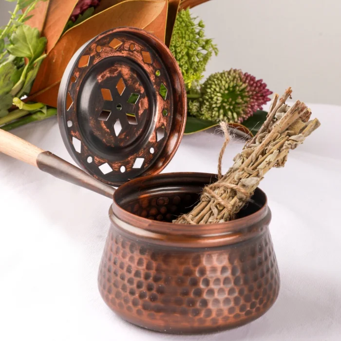 El yapımı oksit bakır tütsü gezdirme çanakları ile adaçayı, lavanta vb. ot tütsüleriniz ve Palo Santo, Sandal ağacı, Öd ağacı tütsülerinizi evinizin salonunda ve odalarında gezdirebilir, tütsülerinizin ferahlatıcı ve dinginleştirici etkisini tüm alanlara yayabilirsiniz.