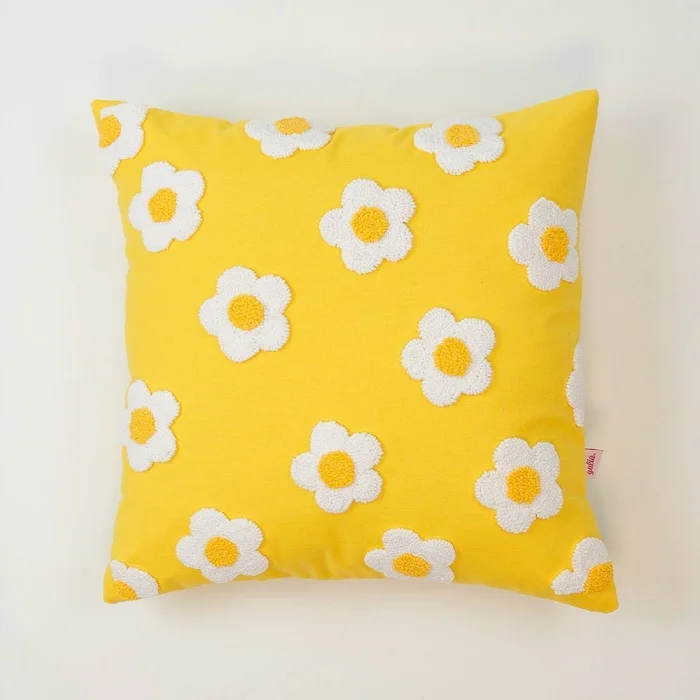 Ürün: Bloom - Papatya Desenli Dekoratif Kırlent Kılıfı | El Yapımı Punch Needle Tasarım