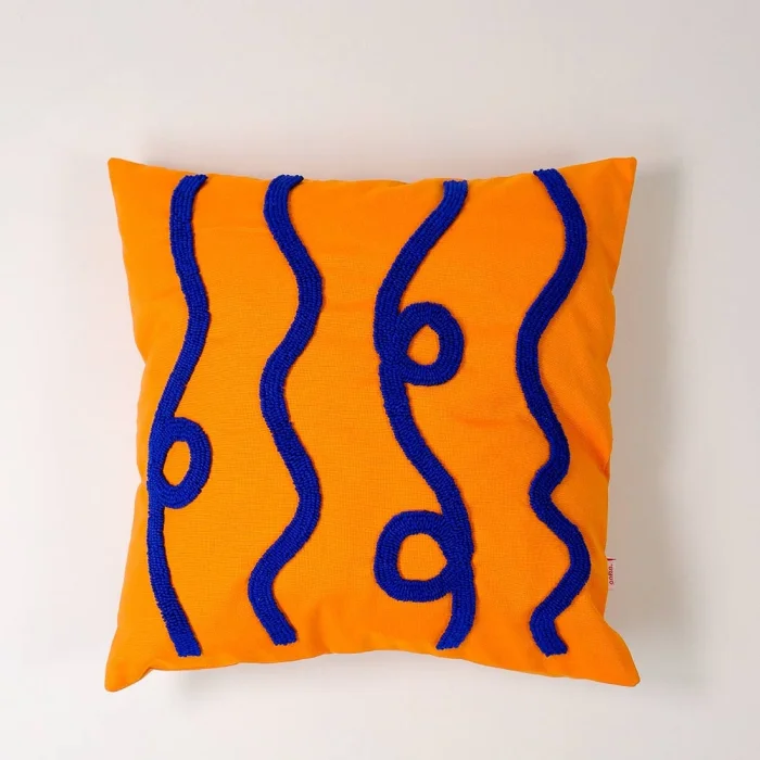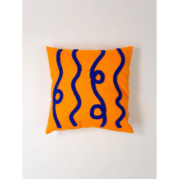 Modern çizgileri ve enerjik rengiyle Electric Flow, yaşam alanlarınıza güçlü bir dinamizm katar. Mavi şeritlerin turuncu zemin üzerinde dalgalanması, elektrik akımı ve hareket hissini yansıtır. 42x42 cm ölçülerindeki bu kırlent kılıfı, %65 pamuk ve %35 polyester kumaştan üretilmiştir. 3 farklı renk seçeneğiyle dekorasyonunuza uyum sağlar.