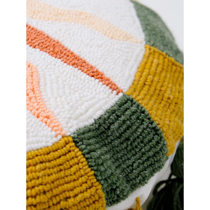 Ürün: Helios - Yuvarlak Dekoratif Kırlent | El Yapımı Punch Needle Tasarım