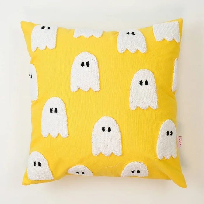 Retro oyunlardan ilham alan Pacman, eğlenceli hayalet motifleriyle tasarlandı. 42x42 cm ölçülerinde olan kırlent kılıfı, %65 pamuk ve %35 polyester kumaştan üretilmiştir. El yapımı punch needle işçiliğiyle öne çıkar ve 4 farklı renk seçeneğiyle dekorasyonunuza dinamik bir hava katar.