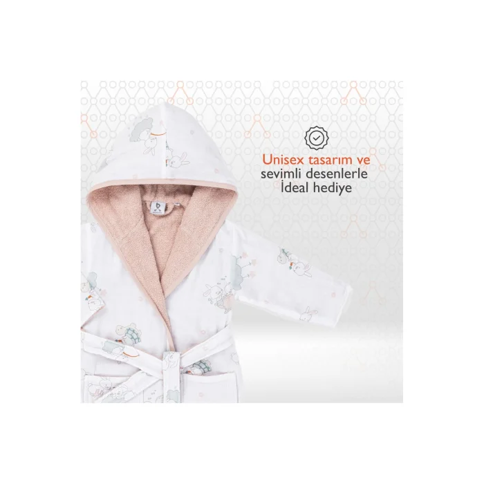 Ürün Açıklaması:Gezenbebe Hero Desenli Müslin & Havlu Bebek Çocuk Bornozu: Gezenbebe Kahramanlarıyla Banyo Sonrası En Sıcak Sarılma!Gezenbebe Hero Desenli Müslin & Havlu Bebek Çocuk Bornozu, miniklerin banyo sonrası sıcacık ve konforlu hissetmeleri için özenle tasarlandı. Bornozun dış yüzeyi, Gezenbebe'nin sevimli kahramanları Tavşan, Fil, Ayıcık ve Koala'nın eşsiz desenleriyle süslenmiştir, bu sayede çocuğunuz banyo sonrası bu sevimli karakterlerle sarılma fırsatı bulur. İç yüzeyde ise pastel tonlardaki havlu kumaşı, miniklerin hızla kurumasına yardımcı olurken, aynı zamanda onları rahat ve yumuşacık bir dokunuşla sarar. Hem şık hem de fonksiyonel olan bu bornoz, banyo ritüellerinizi daha eğlenceli ve konforlu hale getirecek.Öne Çıkan Özellikler:GEZENBEBE İMZASI:Gezenbebe'nin sevilen kahramanları ile minikler banyo sonrası da şıklıklarını koruyor.YÜKSEK KALİTE KUMAŞ:Yumuşak ve nefes alan pamuklu kumaş, bebeklerin hassas cildini koruyarak maksimum konfor sağlar. Dayanıklı yapısı ile uzun süre kullanım imkanı sunar.SICACIK TASARIM:Sevimli ve sıcacık desenleriyle, çocuğunuzun banyo sonrası en rahat anlarına eşlik eder.CİLDE DOST:Hipoalerjenik yapısı sayesinde, alerjik reaksiyonlara karşı koruma sağlar. Kolay temizlenebilir ve koku yapmaz.PRATİK KULLANIM:Kuşaklı tasarımı, çocukların rahatça giyip çıkarabilmelerini ve özgürce hareket edebilmelerini sağlar.IDEAL HEDİYE SEÇENEĞİ:Hem kız hem de erkek çocuklar için unisex tasarımıyla mükemmel bir hediye alternatifidir.DOĞAL BOYA:Baskılarda cilde zarar vermeyen su bazlı boyalar tercih edilmiştir.MÜŞTERİ ODAKLILIK:Müşteri geri bildirimleri ile ürünlerimizi sürekli geliştiriyor, kalite ve konforda mükemmel deneyimi sunmayı hedefliyoruz.Teknik Detaylar:Materyal: Bornozumuz, hafifliği ve nefes alabilirliği ile bilinen müslin kumaş ile ultra yumuşak havlunun mükemmel kombinasyonundan üretilmiştir.Kullanım Amacı: Banyo ya da yüzme sonrası çocuğunuzun vücudunu sıcak ve kuru tutmak için idealdir. Hem kurulama hem de konfor sağlar.Renk Seçenekleri: Bunny (Tavşan), Elephant (Fil), Koala (Koala) ve Teddy (Ayıcık)Ürün Bedenleri: 1-2 Yaş, 2-4 Yaş.Bakım Talimatı: 30 derecede yıkayınız ve direkt güneş ışığına maruz bırakmadan kurutunuz.Gezenbebe Hero Desenli Müslin & Havlu Bebek Çocuk Bornozu ile çocuğunuzun banyo sonrası anları hem konforlu hem de stil sahibi olsun. Onun için en iyisini tercih edin, Gezenbebe kalitesini deneyimleyin.