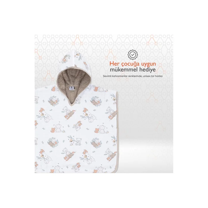 Ürün Açıklaması:Gezenbebe Hero Desenli Müslin & Havlu Bebek Çocuk Pançosu: Kahramanların Sıcaklığında, Doğallığın Rahatlığında!Minik kahramanınız için sadece bir panço değil, aynı zamanda bir macera yoldaşı: Gezenbebe Hero Desenli Müslin & Havlu Panço! Bebeğinizin neşeli anlarında yanında olacak bu özel ürün, Gezenbebe’nin ikonik Fil, Koala, Ayıcık ve Tavşan kahramanlarının eşsiz desenleriyle buluşuyor. Tene değen iç yüzeyindeki havlu kumaş, hem yumuşaklığı hem de doğal sıcaklığı ile bebeğinizi sarıp sarmalayarak konforun ve şıklığın eşsiz birleşimini sunar. Şimdi, minik kahramanınızla birlikte yeni maceralara atılmaya hazır mısınız?Öne Çıkan Özellikler:GEZENBEBE ÖZGÜNLÜĞÜ:Gezenbebe'nin eşsiz kahramanları ile stilinizi ortaya koyun.YÜKSEK KALİTEDE KUMAŞ:Hero Desenli Müslin & Havlu Panço, nefes alabilirliği ve ultra yumuşaklığı ile bebeğinizin konforunu garanti eder.SİMGESİNİZ:Sevimli ve benzersiz deseni, bebeğinizin ruh halini yatıştırırken, aynı zamanda ona özgünlük katar.ÇOK FONKSİYONLU KULLANIM:Sadece günlük kullanım için değil, aynı zamanda plaj ve havuz sonrası için de idealdir.HASSAS TENLERE ÖZEL:Hipoalerjenik özelliği ve kolay yıkanabilirliği ile her cilt tipi için uygundur, özellikle hassas ciltlere sahip bebekler için idealdir.HEDİYE OLARAK İDEAL:Renkli, sevimli ve unisex tasarımıyla tüm bebekler için mükemmel bir hediye seçeneği.DOĞAL BOYA:Baskılarda doğal ve zararsız su bazlı boyalar tercih edilmiştir.SİZİN İÇİN HER ZAMAN EN İYİSİ:Müşteri memnuniyeti bizim için ön planda. Geri bildirimlerinizle ürünlerimizi sürekli olarak geliştiriyor ve mükemmeliyet için çalışıyoruz.Teknik Detaylar:Yüksek Kaliteli Malzeme: Hafif, nefes alabilir ve hızla kuruyabilen premium materyaller ile üretildi.Bebek Dostu: %100 pamuksu dokusuyla, bebeğinizin hassas teni için maksimum konfor ve kuruluk sağlar.Kullanım Süresi: Pançolarımız 5 yaşına kadar olan dönemde bebeğinizin yanından ayrılmayacak bir arkadaş olacak.Özgün Renk Seçenekleri: Bunny (Tavşan), Elephant (Fil), Koala (Koala) ve Teddy (Ayıcık) gibi çekici renk ve desen alternatifleriyle.Bakım Talimatı: 30 derecede yıkayınız ve direkt güneş ışığına maruz bırakmadan kurutunuz.Gezenbebe Müslin Panço ile hem bebeğinizin rahatlığına hem de stilinize yenilik katın. Kalite ve konforda sınır tanımayan bu özel ürün, bebeğiniz için en iyisini arayan ebeveynler için tasarlandı.