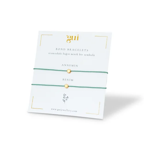 Bileklikler 18 ayar altın kaplamalı pirinç boncuklarla üretilmiştir. Bileklik, asansör düğümü yardımıyla farklı bileklik kalınlıklarına göre ayarlanabilir.