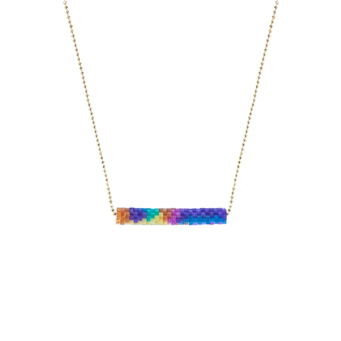 Kolye ucu cam boncuklar ile dikilerek üretilir. Kolye zinciri ise 925 ayar gümüş üzerine 18 ayar altın kaplamadır. Kolye ucu 3,4 cm'dir. Kolye zinciri 45 cm'dir.