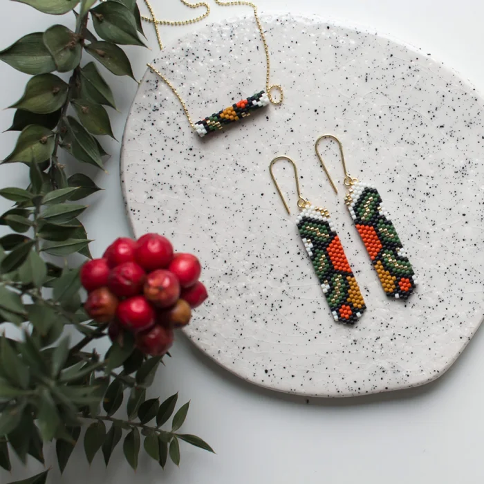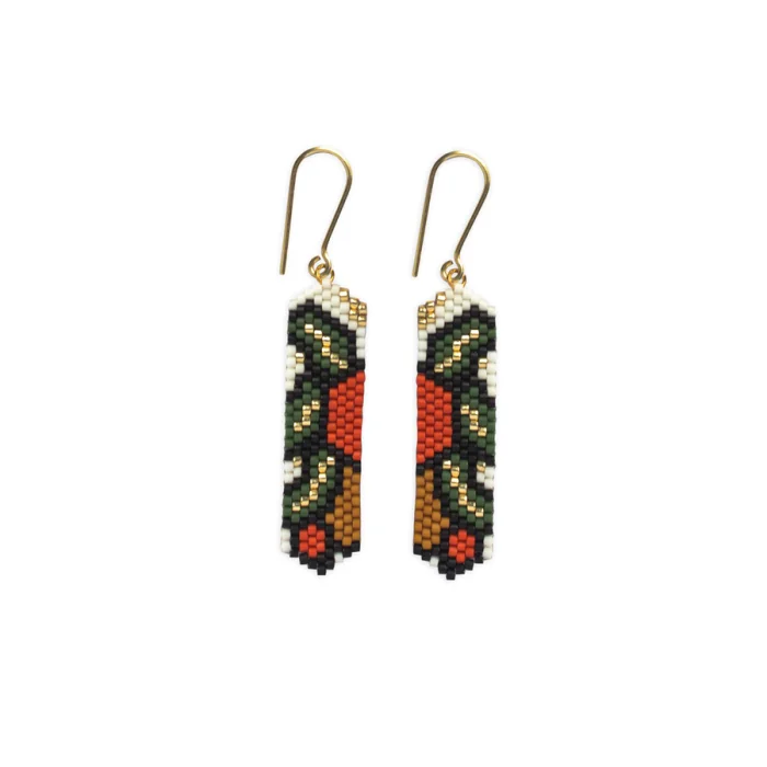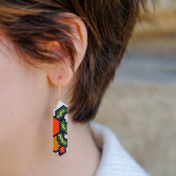 Küpeler cam boncuklar ile dikilerek üretilir. Küpe kancaları ise 925 ayar gümüş üzerine 14 ayar altın kaplamadır.